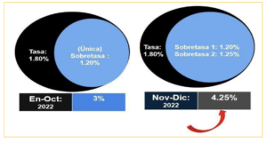 Cabe aclarar que la Tasa (1.80%) y Sobretasa 1ra (1.20%) de ese Impuesto creado por aquella Ley al inicio de 2022, NO fueron eliminados ni modificados por esta nueva reforma; por lo que la nueva Sobretasa 2da (1.25%), se deberá sumar al COSTO FISCAL TOTAL de ese Impuesto, para los restantes meses de noviembre y diciembre de 2022.